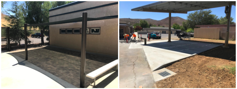Eating Area Upgrade at Oak Hills Elementary SchoolEating area at Oak Hills Elementary School expanded into an outdoor space, equipped with pavers, lunch tables and shade sails.